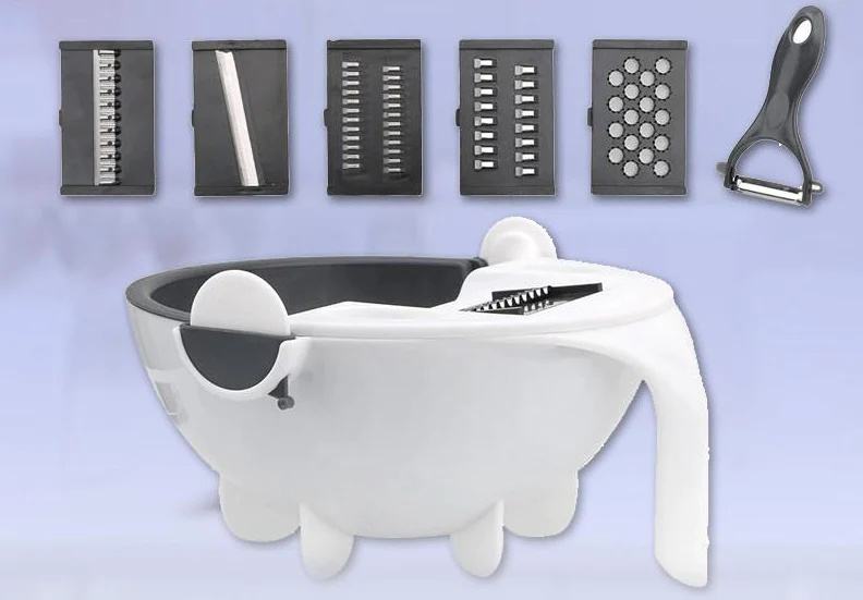 3 rezača, 2 noža, sjeckalica i ribež, uz zaseban alat za guljenje, pokrivaju sve vaše potrebe za sjeckanjem.