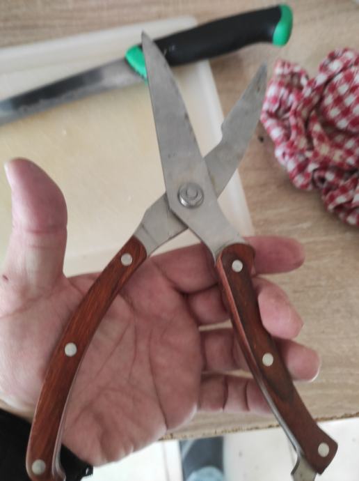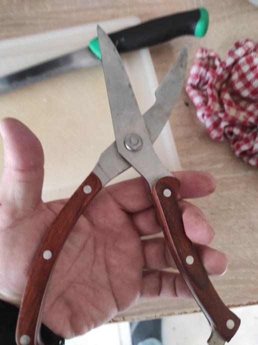 Nove škere za rezanje mesa,polica,pataka ili ostalog mesa.Izrađene od nehrđajućeg čelika,jako kvalitetne i ne koristene.Za sve informacije nazovite na broj 097-6601365 ili pošaljite upit na Viber ili Njuskalo, a Šaljem Poštom ili tiskom ili u dogovoru sa kupcem.Stanje kao na slikama!!