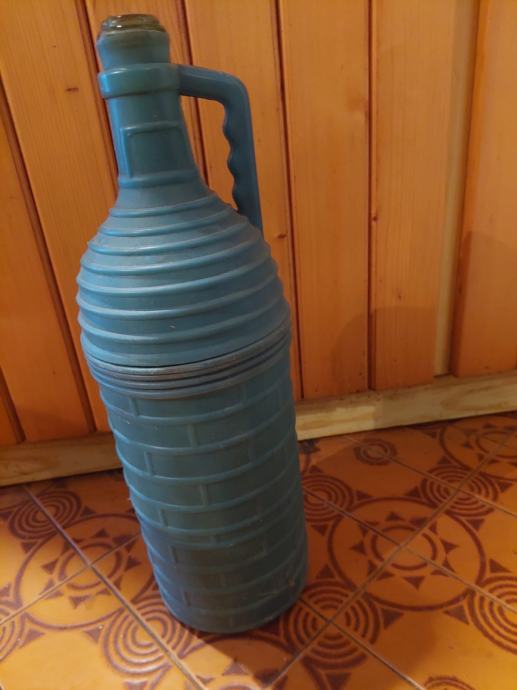 Prodajem staklenu bocu za vino/rakiju obloženu plastikom u imitaciji pletiva zapremnine 3L.