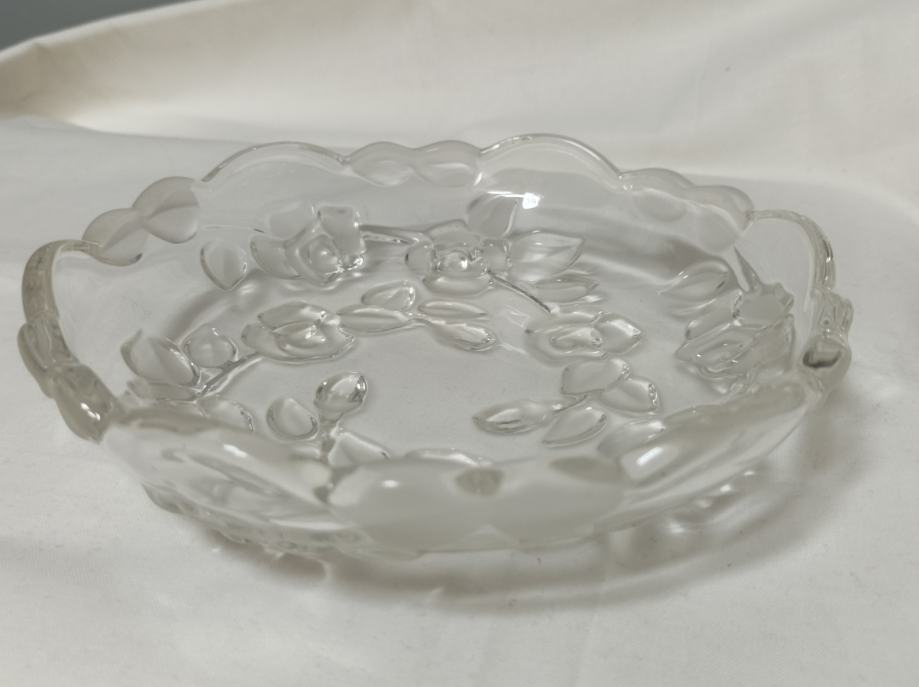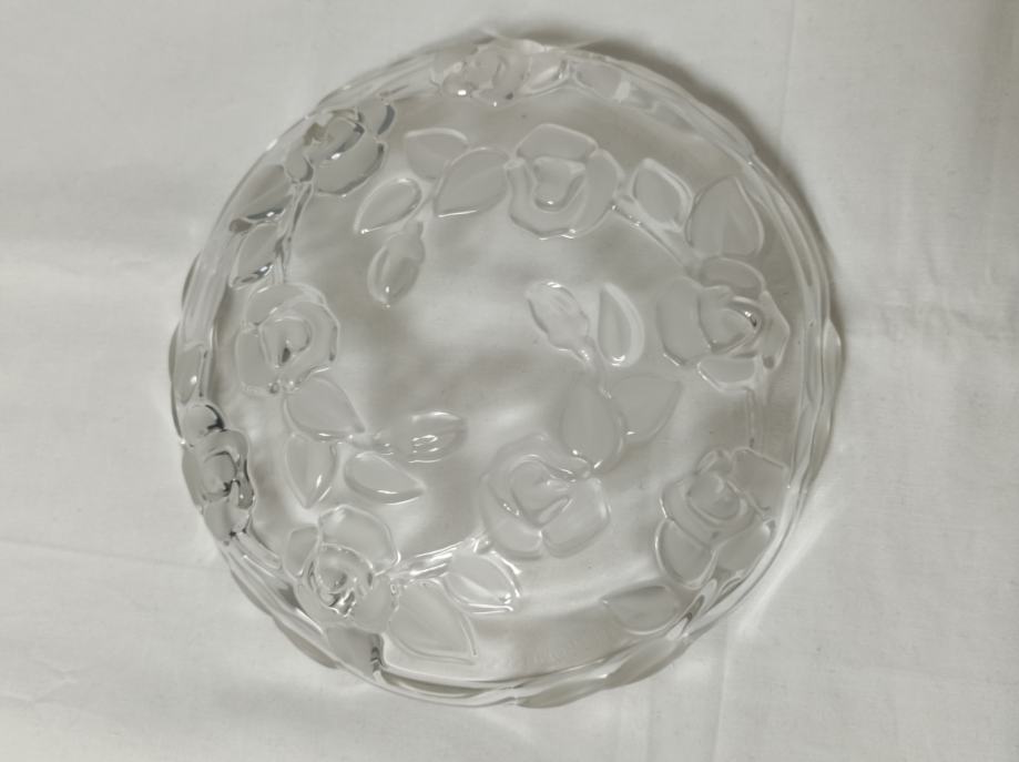 Gornja površina na koju se servira je potpuno glatka, a izvana tj. s donje strane je reljefno cvijeće, na kom su neki dijelovi glatki a neki su brušeni "mat"