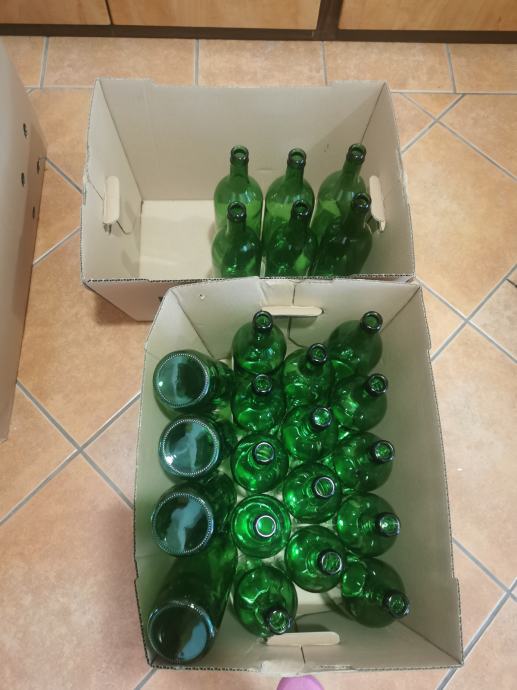 Prodajem staklene boce bez čepa, 1l. 46 komada smeđih i 24 komada zelenih. Boce su jednom korištene te nakon toga oprane. Cijena 30€ za sve. Odnosno 0.45 centi po komadu.
