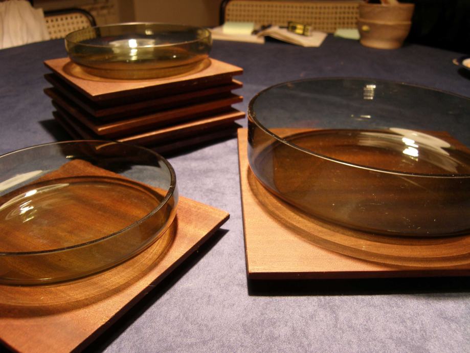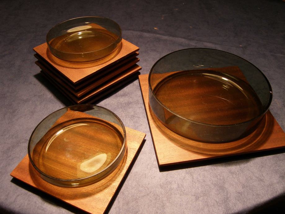 Staklene posudice sa drvenim podlošcima