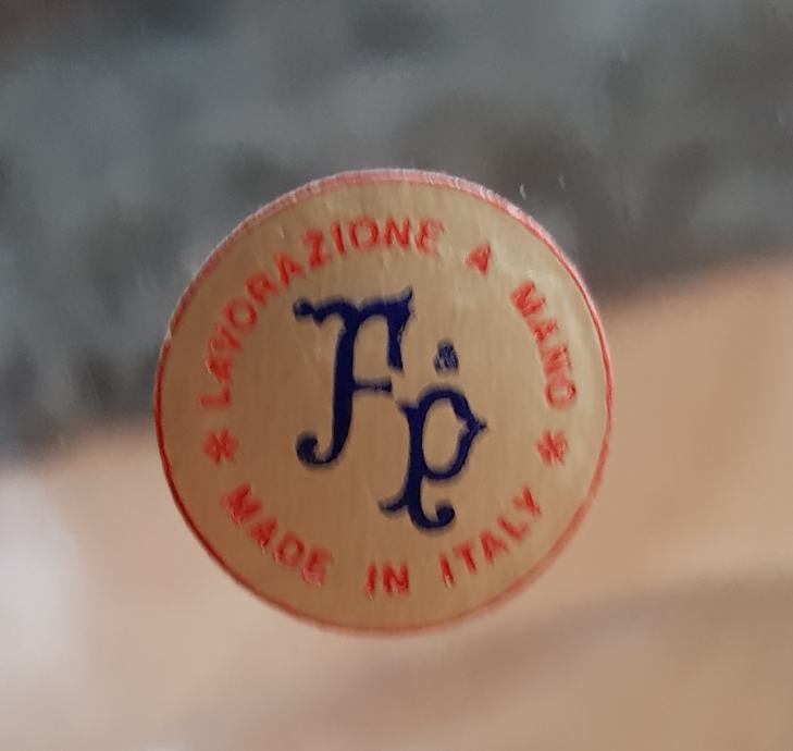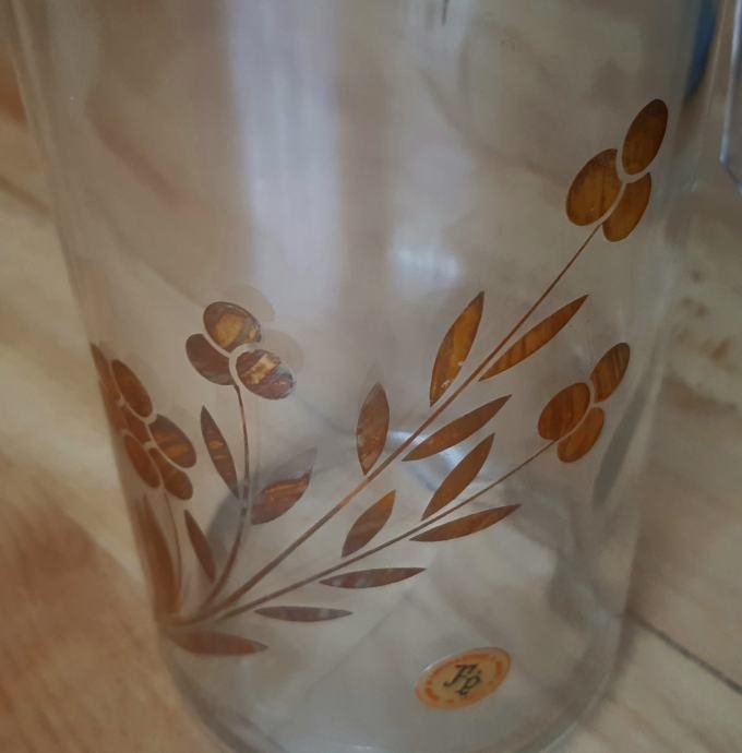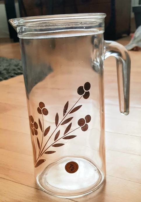 'F&P Lavorazione a mano' (F&P ručni rad) stakleni vrč za zlatnom dekoracijom, sredina prošlog stoljeća.