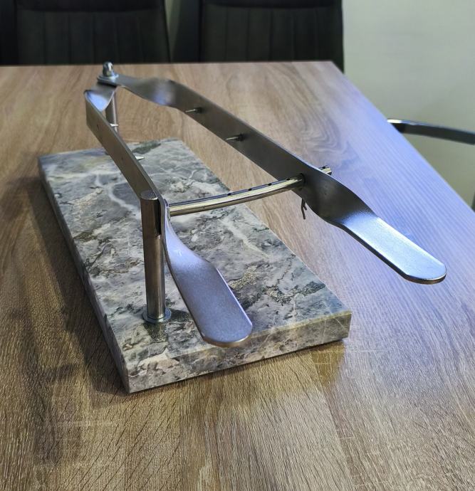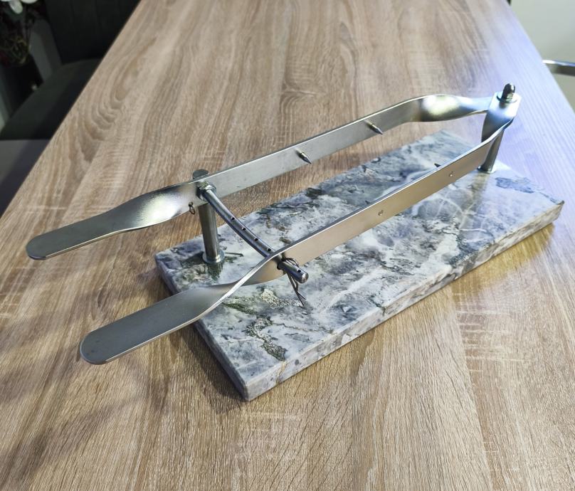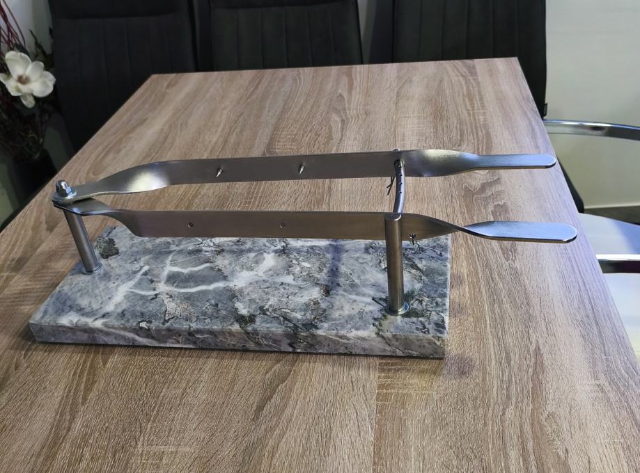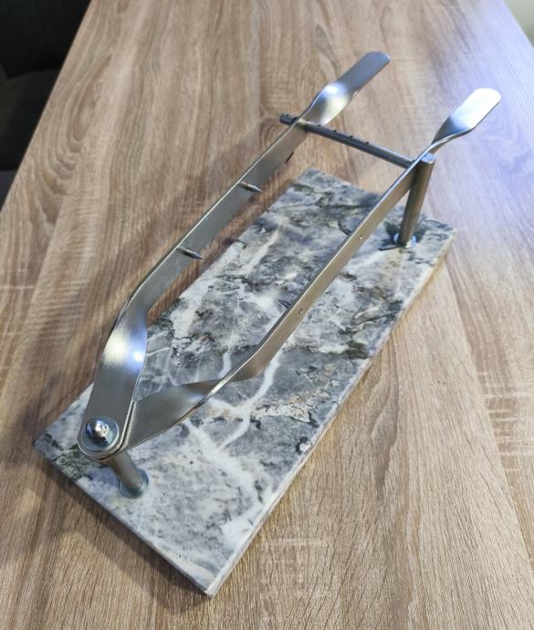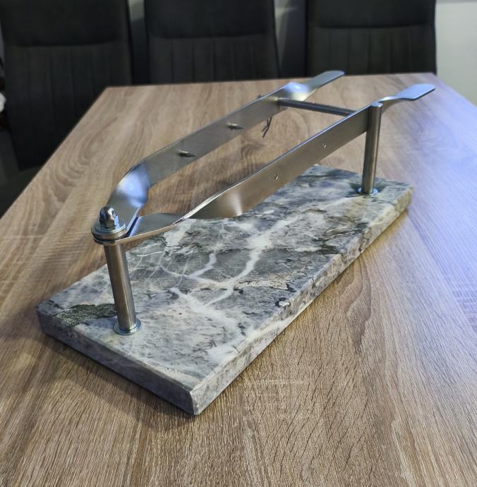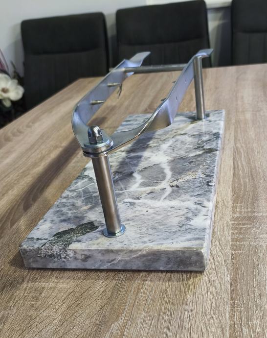 Stalak za pršut sa slika, mramor- inox, postolje dimenzija 45 x 20 x 3 cm, stalak ne korišten, stanje odlično kao novo vidljivo na slikama.