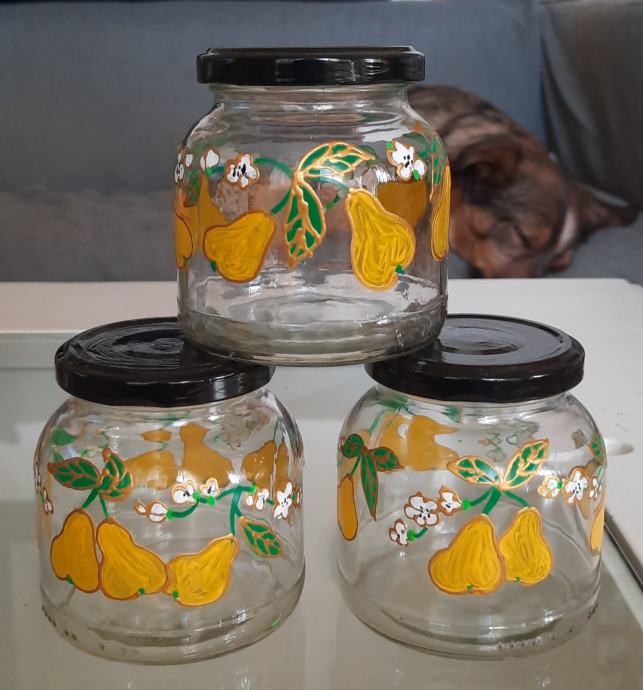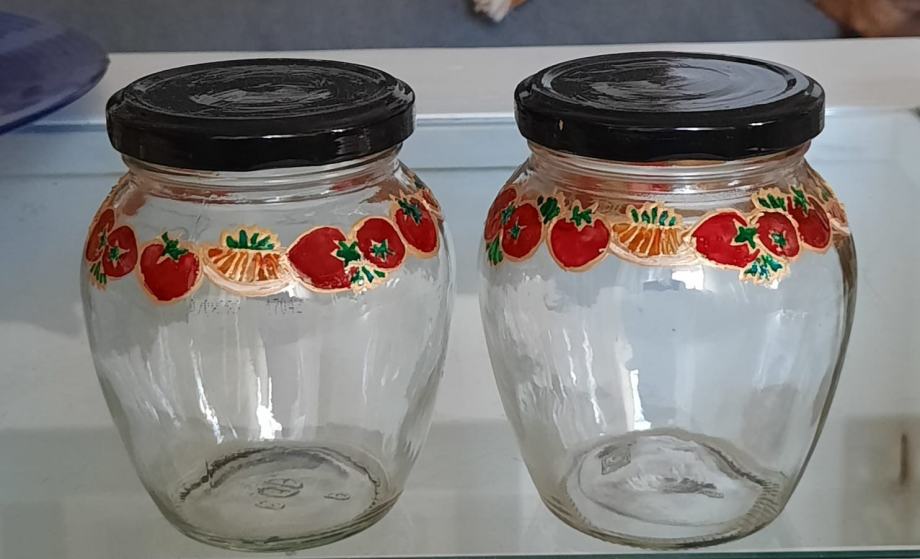 Teglice rucno oslikane, manje i vece, unikatne, za zimnicu ili pohranu stvari. Manje su 3 eura, a veće su više. Ovisno o veličini i količini. Cijene nisu konačne. Tel 0989132156