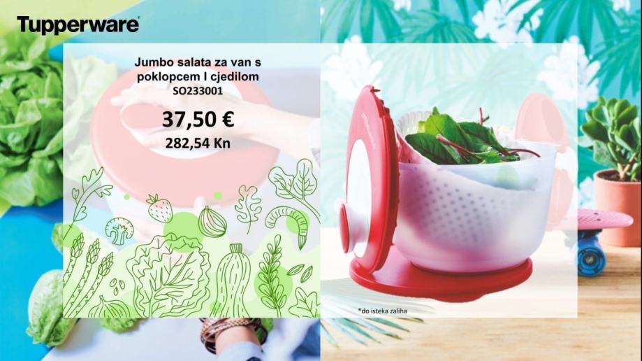 - U Tupperware centrifugi možete ocijediti višak masnoće iz pržene hrane poput šnicli,lignji,girica, uštipaka, pomfrita te posušiti i lignje i ribice i pobrašniti ih u njoj.