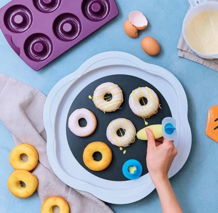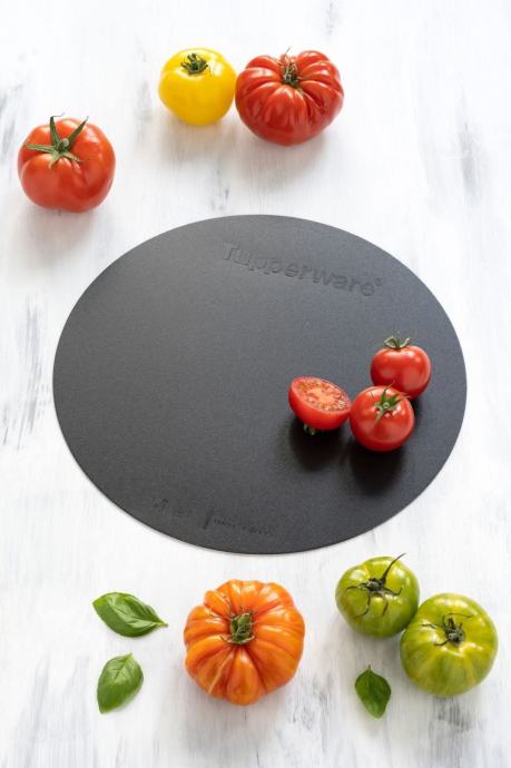 Okrugla, fleksibilna daska za rezanje i podmetač za torte, prilagođen spremnicima za torte.