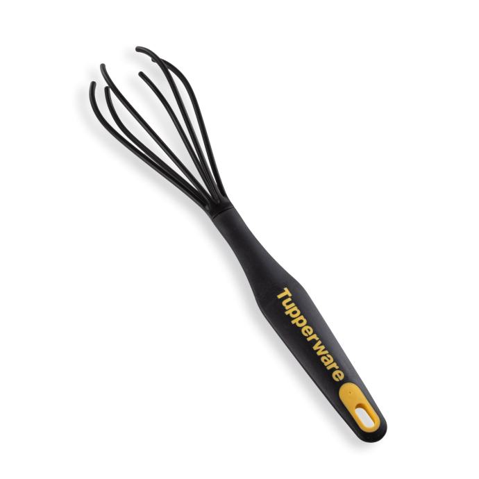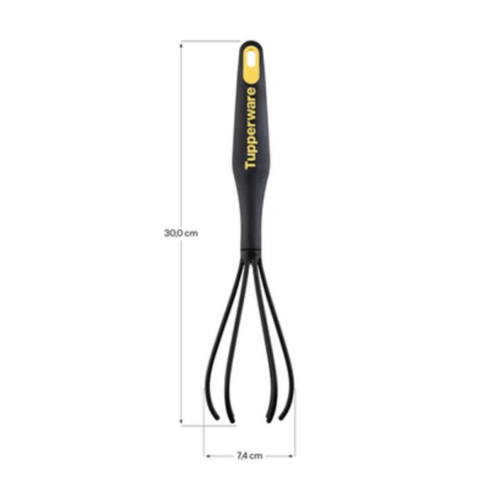 Prodajem novu Tupperware pjenjač u crnoj boji sa žutim detaljima na ručki. Dimenzije su 30 cm u duljinu i 7,4 cm u širinu. Fleksibilni krakovi omogućuju lagano rukovanje, a udobna ručka dobro leži u ruci.