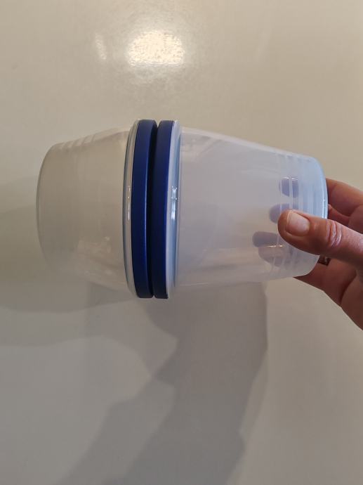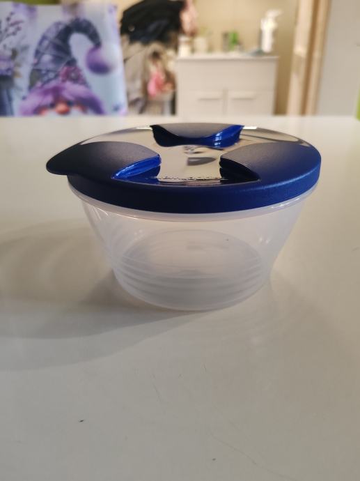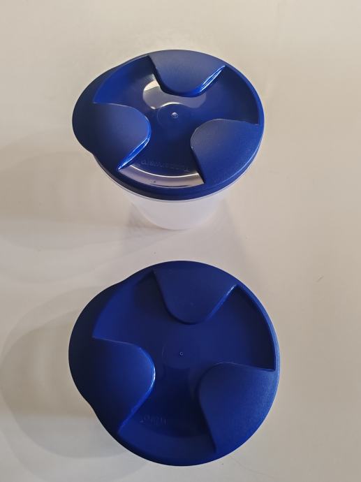 Jedna posuda od 500ml i jedna od 800ml. Imaju hermetički poklopac, idealne za transport i pohranu hrane. Kad se spoje strane sa poklopcima posude se "zalijepe" jedna za drugu. Nove i nekorištene, par sitnih tragova na poklopcu od skladištenja.