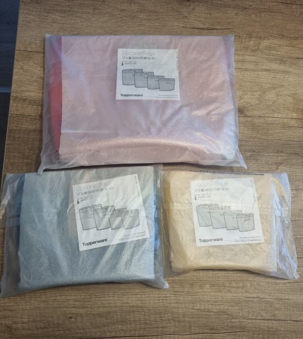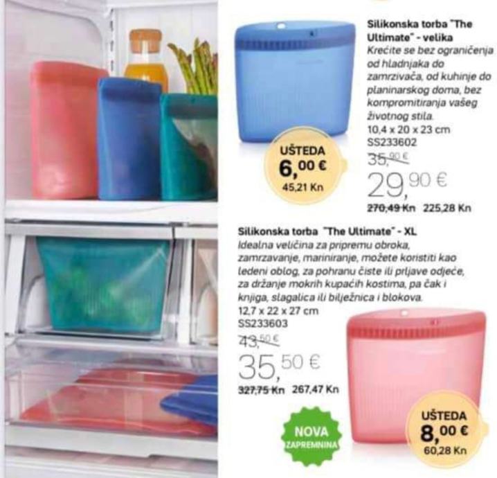 XL, L i S veličina. Tri super multifunkcionalne silikonske torbice po super cijeni u setu - 60 eura i častim sa besplatnom poštarinom. Na drugoj slici je detaljan opis za što se mogu koristiti - vodonepropusne, mikrovalna, pećnica, kuhanje, zamrzavanje, hladnjak, pranje u perilici....