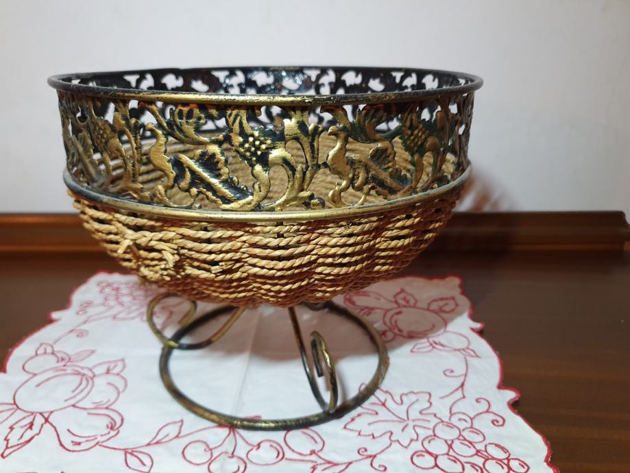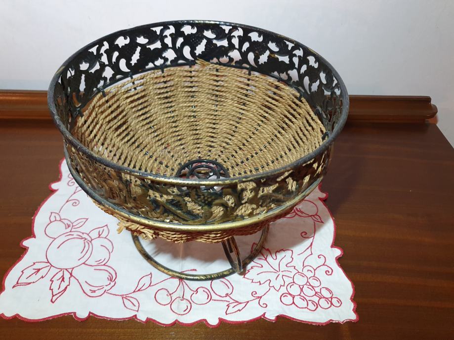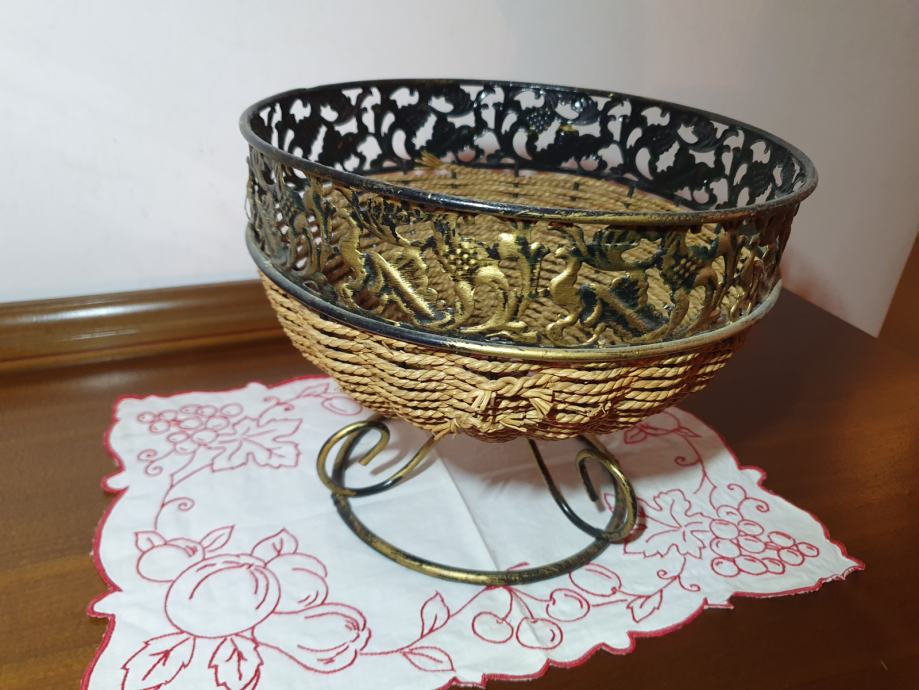 Ukrasna tegla za cvijeće, kombinacija špage i metala, visine 20 cm, unutarnji promjer 22 cm, kao nova