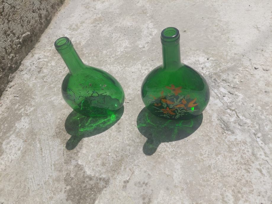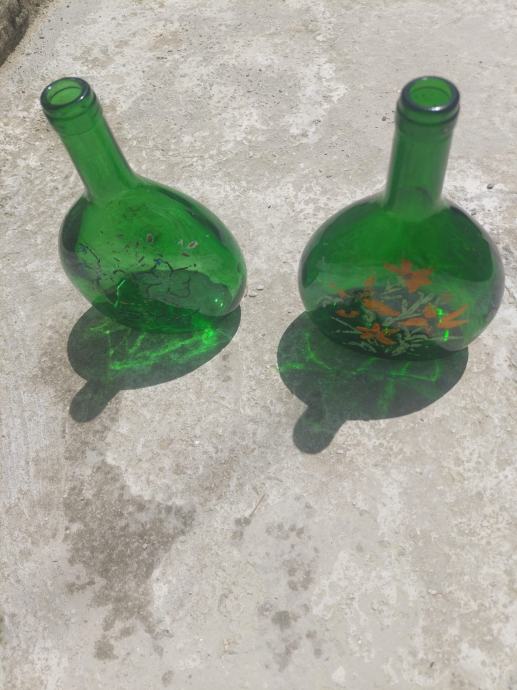 Prodajem dvije ukrasne staklene boce (zelene boje stakla) iz 1950-ih, neoštećene, odlično stanje. Cijena je 3 eura po komadu.