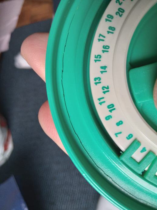 Poklopac ima puknuće prikazano na slici koje ne utječe na funkcionalnost.