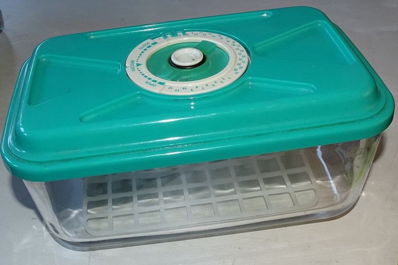 3. Vacsy (Zepter) staklena posuda s vakuum poklopcem (dimenzije 20 × 12 × 8 cm)
