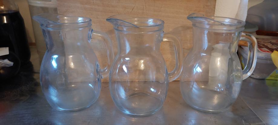 Prodaju se 3 vrča za sok, vino, vodu, i druge napitke, svaki vrč je od jedne litre, jednom korišteni, kao NOVO, sve u kompletu, cijena 7 eura