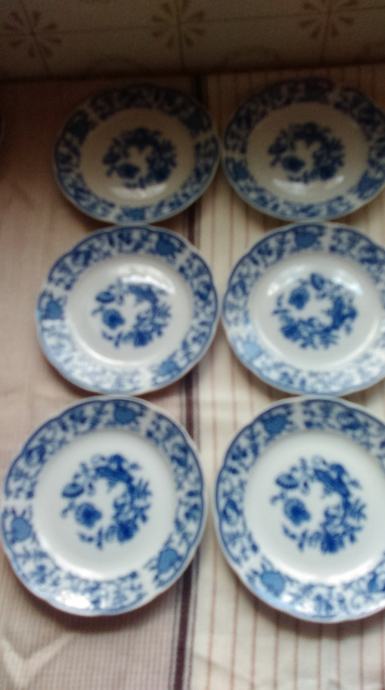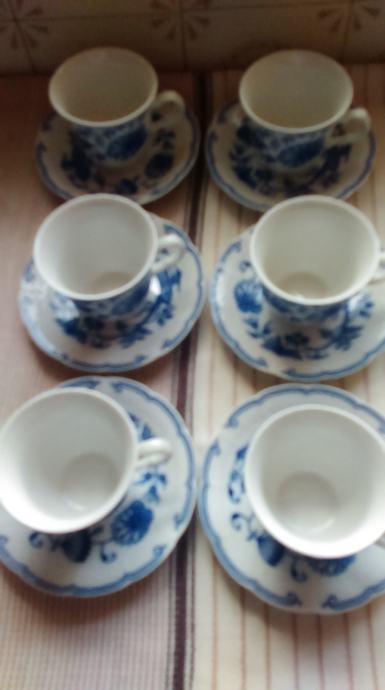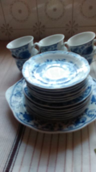 zwiebelmuster porculan čehoslovačke tvrtke THUN. set se sastoji od velikog tanjura za kolače, 6 malih tanjura za kolače. 6 šalica za kavu/čaj i 6 malih tanjurića. ukupno 19 komada