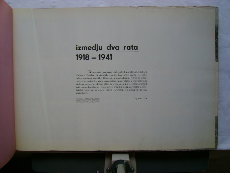 Fotomonografija - 40 godina borbe za socijalizam - Spomen knjiga 1919. -1959. - izdavač NIP Mladost Beograd, 1959. godine, 49 x 34 cm, tvrdi uvez, stranice nisu numerirane, bogato ilustrirano crno-bijelim fotografijama i faksimilima dokumenata te, za ono vrijeme, luksuzno opremljeno, rijedak primjerak.