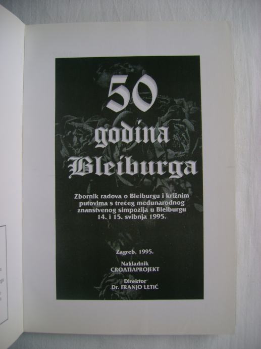 50 godina Bleiburga - Zbornik radova o Bleiburgu i križnim putovima s trećeg međunarodnog znanstvenog simpozija u Bleiburgu 14. i 15. svibnja 1995. - urednik Jozo Marević, izdavač Croatiaprojekt, Zagreb 1995. godine, 17 x 24 cm, meki uvez sa preklopom, 302 stranice, ilustrirano, tekst na hrvatskom, engleskom i njemačkom jeziku.