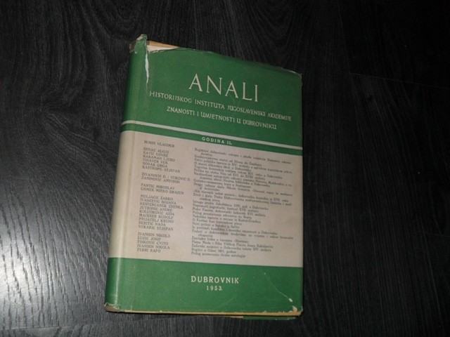 Anali Historijskog instituta Jugoslavenske Akademije znanosti i umjetnosti u DubrovnikuGodina II.Iz sadržaja knjige: Alojz Benac: Srednjevjekovni stećci od Slivna do Ćepikuća, Lovre Katić: Četiri poljičke isprave iz 14. stoljeća u splitskom kaptolskom arhivu, Graga Novak: Prilike na otoku Visu od šesnaestog do osamnaestog stoljeća i dr. Stranica: 431Dimenzije: 17.5x24.5Jezik: DubrovnikPismo: LatinicaStanje: DobroUvez: Tvrdi s ovitkomGodina: 1953