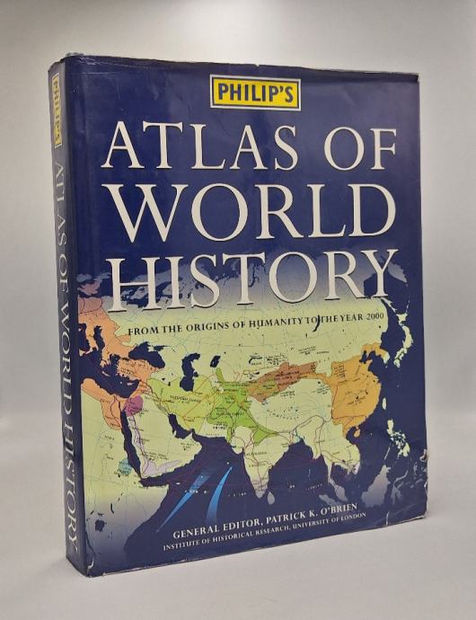 Patrick K. O'Brien: Atlas of world history: From the Origins of History to the Year 2000Ovaj atlas predstavlja priču o civilizaciji u fizičkom okruženju. Posebno osmišljen kako bi čitatelju pomogao vizualizirati velike povijesne teme i odlučujuće trenutke. Kombinira 400 posebno nacrtanih karata koje prikazuju opseg tih događaja.*knjiga ima posvetu prijašnjih vlasnikaStranica: 368Dimenzije: 26x34.5Jezik: LondonPismo: LatinicaStanje: Vrlo dobroUvez: Tvrdi s ovitkomGodina: 1999