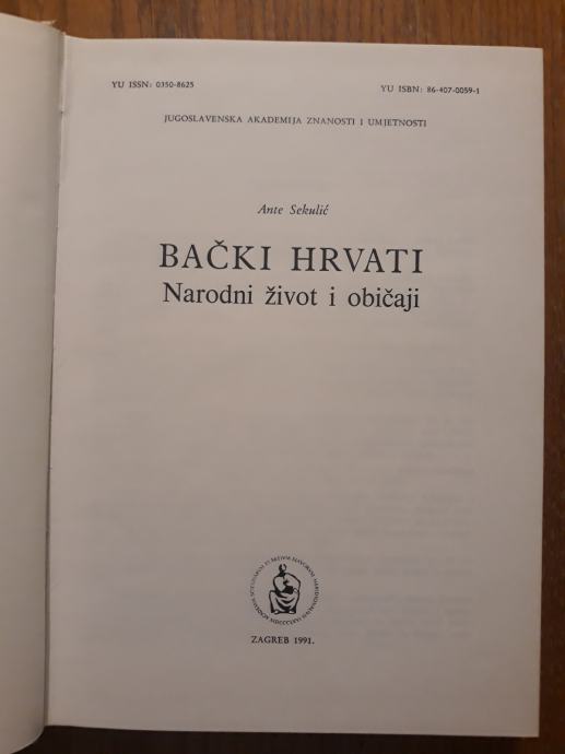 BAČKI HRVATI (Narodni život i običaji) - Ante Sekulić
