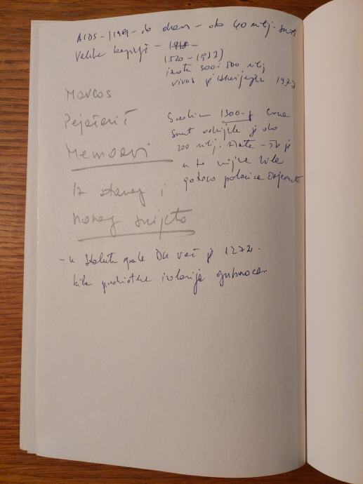 Na zadnjoj praznoj stranici rađene osobne bilješke, vjerojatno bivšeg vlasnika knjige (prikazano na fotografiji)