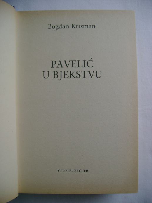 Bogdan Krizman - Pavelić u bjekstvu - izdavač Globus, Zagreb 1986. godine, 17 x 25 cm, tvrdi uvez i papirnati omot, 519 stranica, ilustrirano.