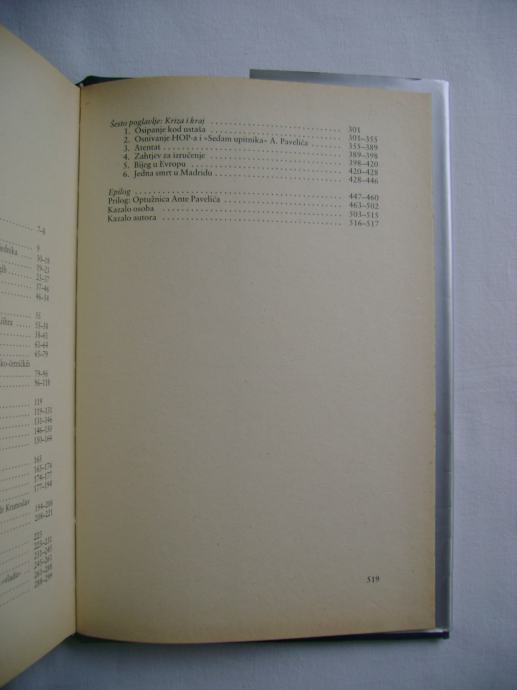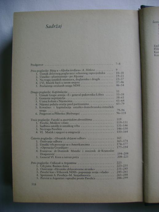 "Pred čitateljem je završna knjiga Krizmanove tetralogije o ustaškom pokretu, koju je naš istaknuti povjesničar započeo Pavelićevim odlaskom u inozemstvo 1929. godine, a završio Pavelićevom smrću 1959. godine. Ova, četvrta knjiga, prikazuje drugu ustašku emigraciju i dokazuje koliko je ustaški pokret malo naučio iz historijskog poraza što ga je doživio kao satelitski režim koji se četiri ratne godine održavao u Hrvatskoj najgorim terorom, pod protektoratom sila zaštitnica, a bez pitanja i privole hrvatskog naroda. Obrađen je bijeg Pavelića i ustaša iz Zagreba pred pobjedonosnom Jugoslavenskom armijom, opisano Pavelićevo kretanje do skloništa u Austriji, skrivanje po Italiji, prebacivanje u Argentinu, u Čile pa zatim u Madrid. Posebna je pažnja posvećena djelatnosti ustaškog poglavnika u Argentini: okupljanju ustaša, publicističkoj djelatnosti, osipanju u ustaškim redovima, popunjenju vlade, sporazumu s M. Stojadinovićem, osnivanju Hrvatske državotvorne stranke i Hrvatskog oslobodilačkog pokreta, Pavelićevom razlazu s Luburićem, atentatu 1957. i Pavelićevoj smrti 1959. godine.