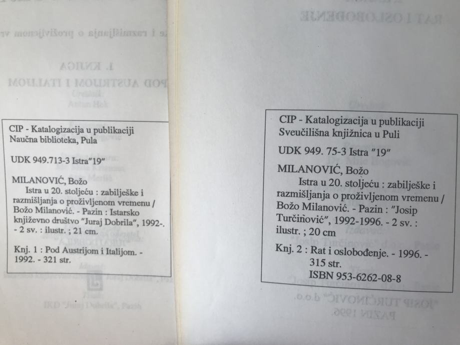 Božo Milanović - Istri u 20. stoljeću - 2x knjige - od 1867. do 1947.