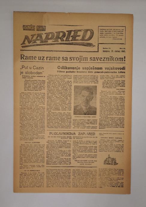 Časopis Napried br. 63/1945.Vojničke novineStranica: 4Dimenzije: 31.5x48Jezik: SarajevoPismo: LatinicaStanje: DobroUvez: MekiGodina: 1945