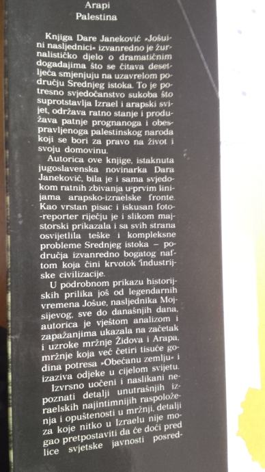 Ova knjiga potresno je svedočanstvo sukoba što suprotstavlja Izrael i arapski svijet, održava ratno stanje i produžava patnje prognanog i obespravljenog palestinskog naroda.