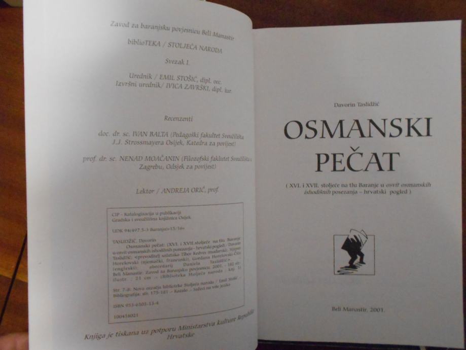 Prodajem izdanje Zavoda za baranjsku povjesnicu iz 2002. g. Davorina Taslidžića "Prostor šutnje". Knjiga je nova, s posvetom i potpisom autora. Uz nju su u ponudi i "Na vratima naroda, na granici svjetova" 1999. g. i "Osmanski pečat" 2001. g.