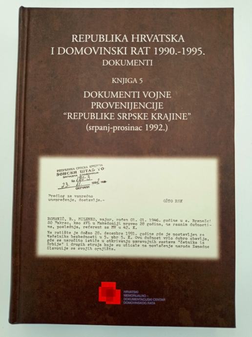 Dokumenti vojne provenijencije “Republike Srpske Krajine” (srpanj-prosinac 1992.)Knjiga 5 "Republika Hrvatska i Domovinski rat 1990.-1995.Urednik: Mate RupićU knjizi su predstavljeni dokumenti vojne provenijencije iz arhivskog gradiva “Republike Srpske Krajine” (RSK) koji se čuvaju u Centru i drugim arhivskim ustanovama u Republici Hrvatskoj. Objavljeni su kronološkim slijedom s potrebnim znanstvenim aparatom, a obuhvaćaju razdoblje od 1. srpnja 1992. do kraja prosinca 1992. godine.Stranica: 562Dimenzije: 17.5x24.5Jezik: ZagrebPismo: LatinicaStanje: Nova knjigaUvez: TvrdiGodina: 2009