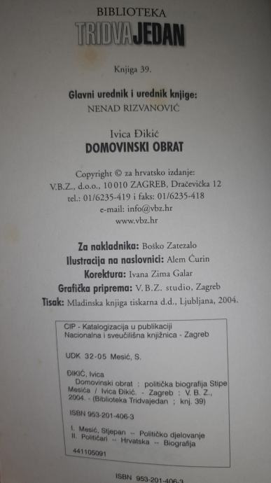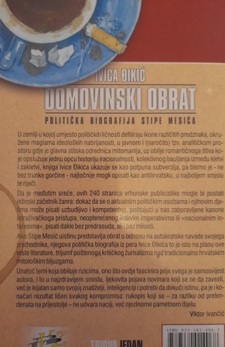 Knjiga Domovinski obrat politička biografija Stipe Mesića ,autor Ivica Đikić,meki uvez 239 str,dobro očuvana
