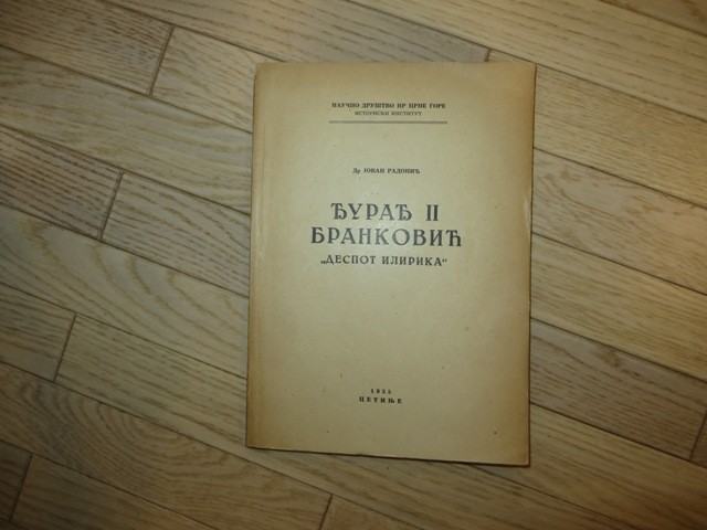 Jovan Radonić: Đurađ II Branković "Despot Ilirika" Stranica: 208Dimenzije: 17x24Jezik: CetinjePismo: ĆirilicaStanje: DobroUvez: MekiGodina: 1955