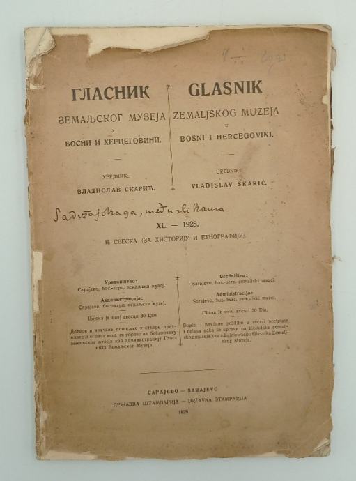 Glasnik Zemaljskog muzeja u Bosni i HercegoviniUrednik: Vladislav Skaric Stranica: 168Dimenzije: 19x27.5Jezik: SarajevoPismo: LatinicaStanje: DobroUvez: MekiGodina: 1928