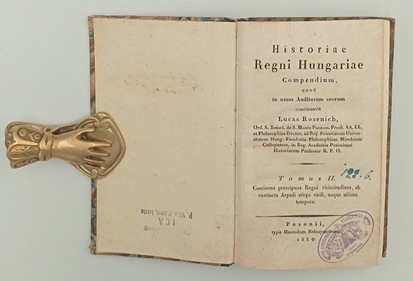 Luka Roženić:Historiae Regni Hungariae IIRoženić, Luka (Jakov), hrvatski povjesničar (Filež, njemački Nikitsch, Gradišće, Austrija, 20. III. 1784 – Mosonszentjános, Madžarska, 28. VII. 1835). Benediktinac. God. 1803. završio studij bogoslovije u Pannonhalmi, a 1805. doktorirao filozofiju u Pešti. Od 1813. bio je profesor filozofije, a 1814–17. opće i madžarske povijesti u Győru. Predavao je potom 1817–30. madžarsku i opću povijest na Pravnoj akademiji u Požunu (Bratislava). Napisao je više povijesnih djelâ na latinskom jeziku, od kojih su poznatija: Opći uvod u povijesne znanosti… (Summaria introductio in historiarum studium…, 1827) i Pregled povijesti kraljevstva Ugarskoga… (Historiae regni Hungariae compendium…, I–II, 1828–29).Stranica: 374Dimenzije: 12x19Jezik: PožunPismo: LatinicaStanje: Vrlo dobroUvez: TvrdiGodina: 1829
