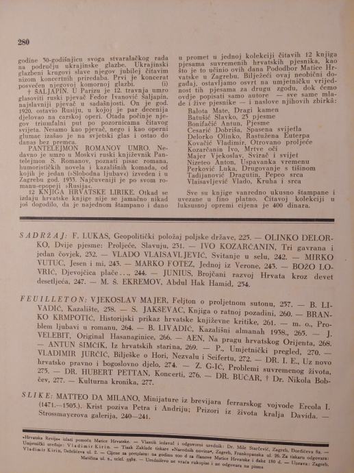 HRVATSKA revija 5 - 1938. / Umjetnički urednik : Vladimir KIRIN