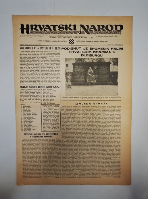 Hrvatski narod - glasilo područnih organizacija hrvatskog oslobodilačkog pokreta br. 144/1978Viestnik Hrvatskog domobrana za Južnu Ameriku, Australiju, Europu i Kanadu.Stranica: 8Dimenzije: 32.5x47Jezik: Buenos AiresPismo: LatinicaStanje: DobroUvez: MekiGodina: 1977