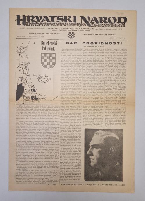 Hrvatski narod - glasilo područnih organizacija hrvatskog oslobodilačkog pokreta br. 161-162/1979.Viestnik Hrvatskog domobrana za Južnu Ameriku, Australiju, Europu, Kanadu i SADUrednik: Miron Krešimir BegićStranica: 12Dimenzije: 31.5x46Jezik: Buenos AiresPismo: LatinicaStanje: Vrlo dobroUvez: MekiGodina: 1979