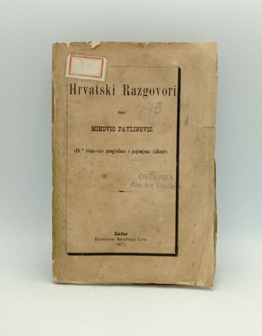 Mihovil Pavlinović: Hrvatski RazgovoriZadar, Brzotiskom Narodnog Lista 1877. Stranica: 287Dimenzije: 13x20.5Jezik: ZadarPismo: LatinicaStanje: DobroUvez: MekiGodina: 1877