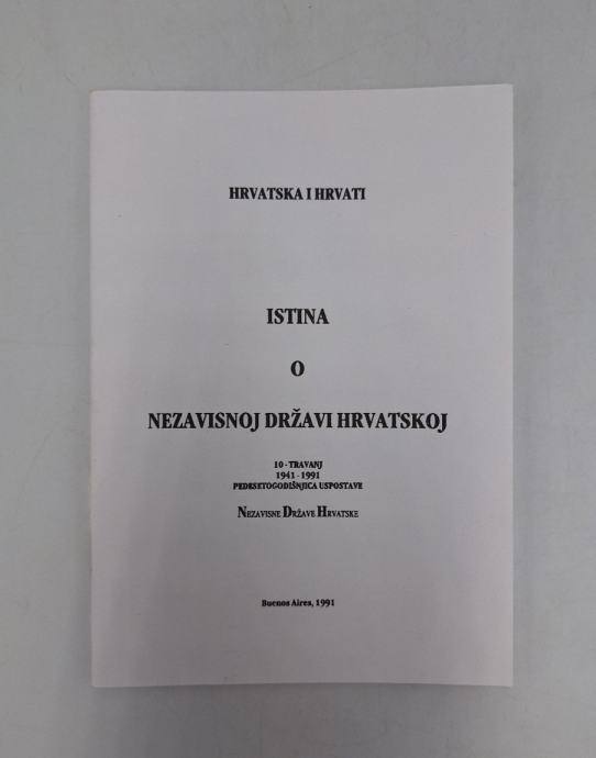 Istina o Nezavisnoj državi HrvatskojEmigrantsko izdanje povodom pedesetgodišnjice uspostave NDH Stranica: 14.5x21Dimenzije: 15x21Jezik: Buenos AiresPismo: LatinicaStanje: OdličnoUvez: MekiGodina: 1991