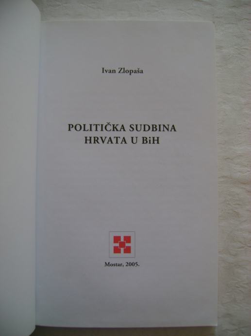 Ivan Zlopaša - Politička sudbina Hrvata u BiH - izdavač Hrvatski blok BiH, Mostar 2005. godine, 14 x 22 cm, meki uvez, 132 stranice, ilustrirano.