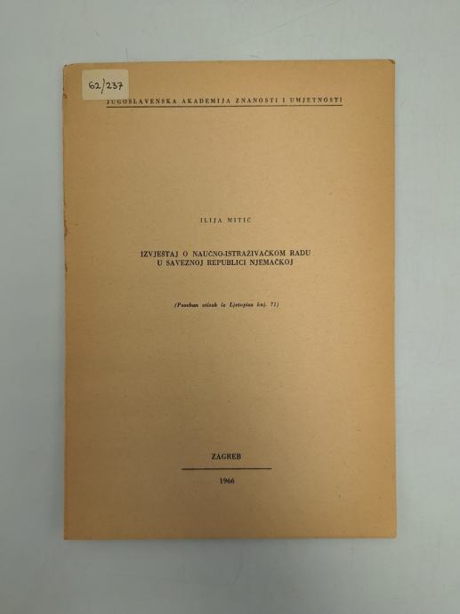 Ilija Mitić: Izvještaj o naučno-istraživačkom radu u Saveznoj Republici Njemačkoj*potpis autoraStranica: 1Dimenzije: 16.5x24Jezik: ZagrebPismo: LatinicaStanje: OdličnoUvez: MekiGodina: 1966