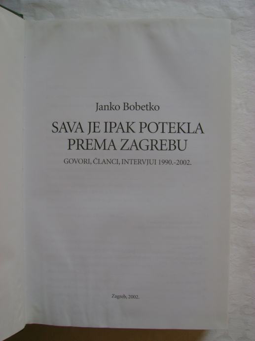 Janko Bobetko - Sava je ipak potekla prema Zagrebu ; govori, članci, intervjui 1990.-2002, - vlastita naklada autora, Zagreb 2002. godine, 17 x 25 cm, tvrdi uvez, 663 stranice.