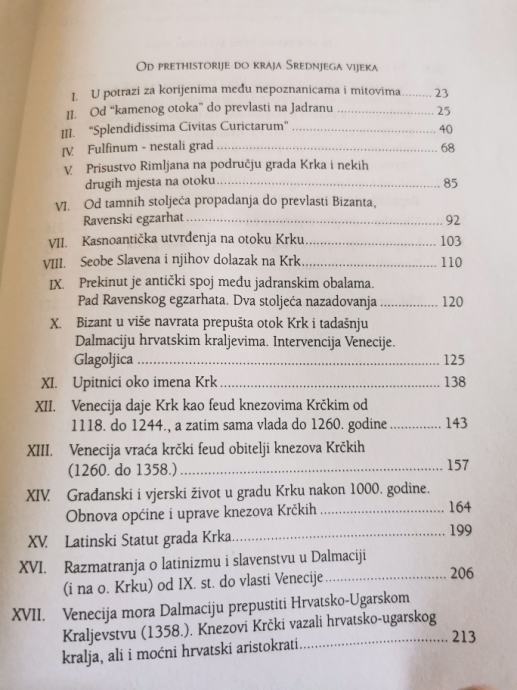 Prijevod knjige o povijesti grada Krka iz pera autorice koja je rođena na Krku i nakon II.svjetskog rata optirala i otišla u Italiju. Iako povjesničarka amaterka autorica je uspjela pripremiti solidan pregled povijesti grada Krka (ali i ostalih naselja na otoku Krku) sa željom da na taj način pomogne svim žiteljima Krka da svoj grad i otok još više vole.