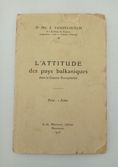 Mil. Z. Yovitchitch: L'attitude des pays balkaniquesStranica: 82Dimenzije: 12x19Jezik: NeuchatelPismo: LatinicaStanje: DobroUvez: MekiGodina: 1916
