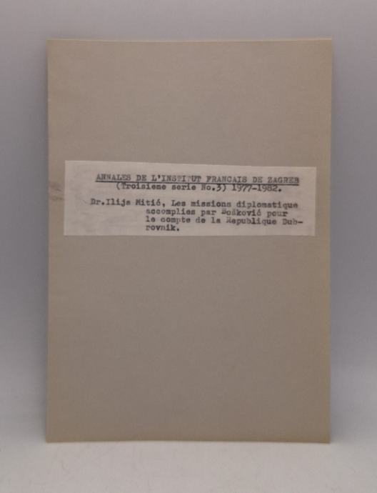 Ilija Mitić: Les missions diplomatique sccomplies per Bošković pour le compte de la Republique DubrovnikStranica: 13Dimenzije: 14x20Jezik: ZagrebPismo: LatinicaStanje: Vrlo dobroUvez: MekiGodina: 1982