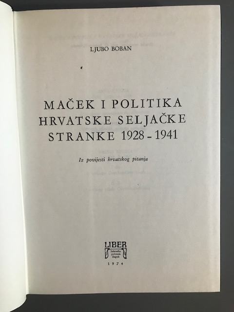 Ljubo Boban: Maček i politika HSS-a 1928-194, sv.I i II, 1974.