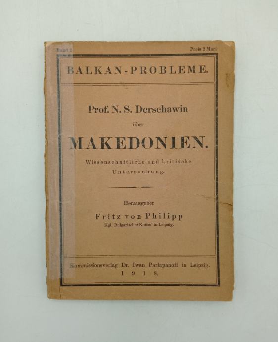 N.S. Derschawin: MakedonienWissenschaftliche und kritische UntersuchungEx libris Dragutin CutvarićStranica: 135Dimenzije: 14x19Jezik: LeipzigPismo: LatinicaStanje: DobroUvez: MekiGodina: 1918